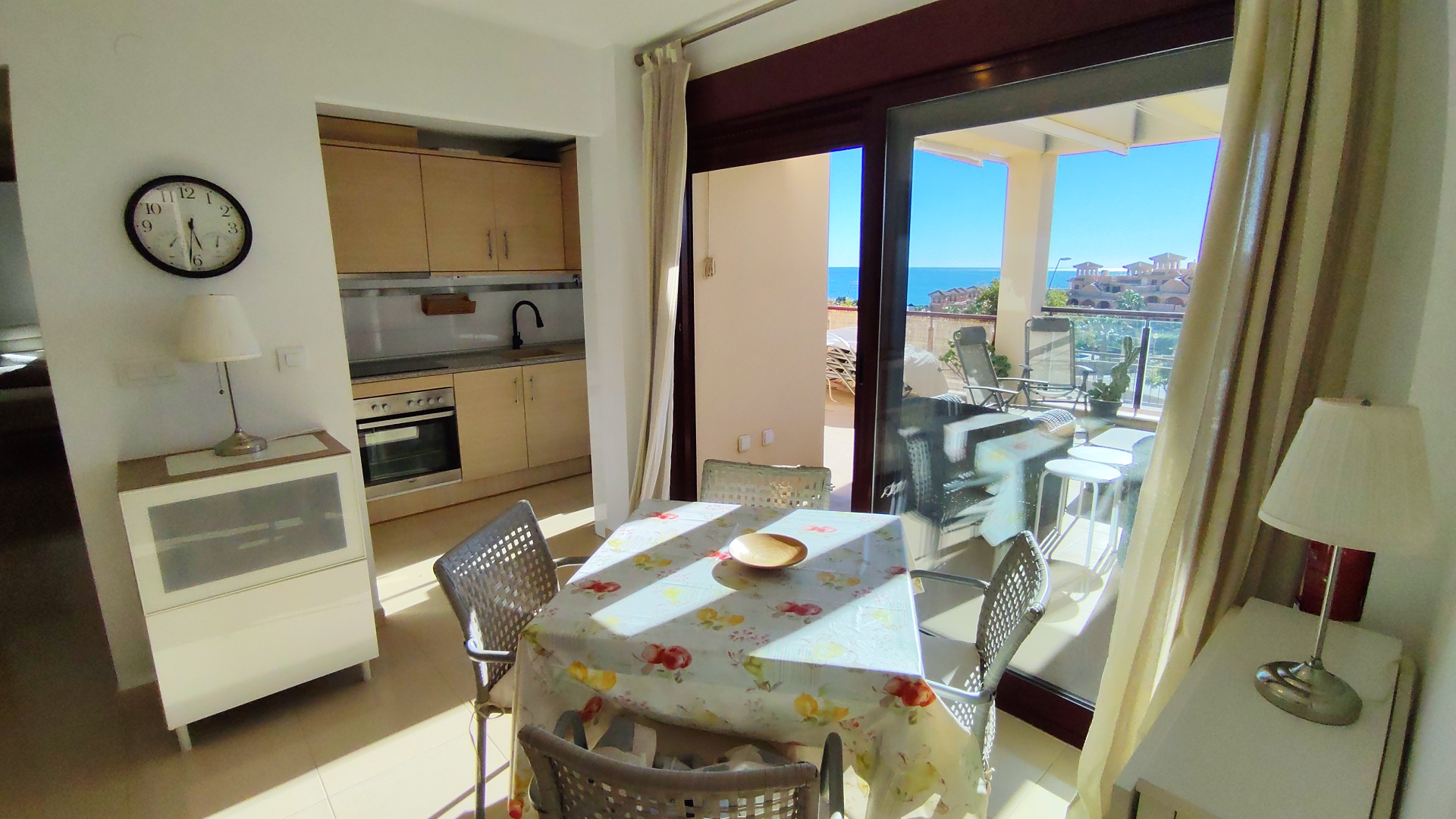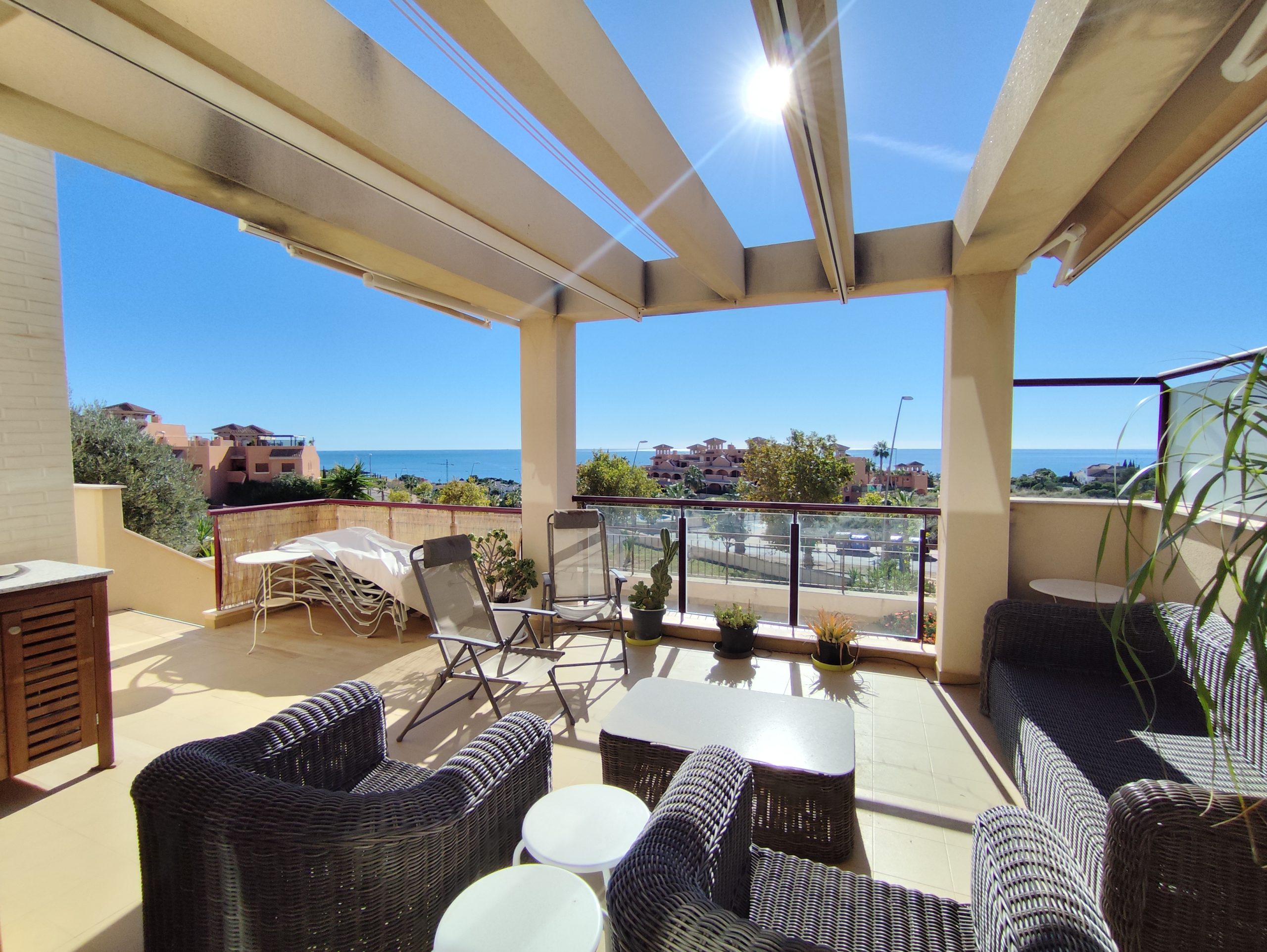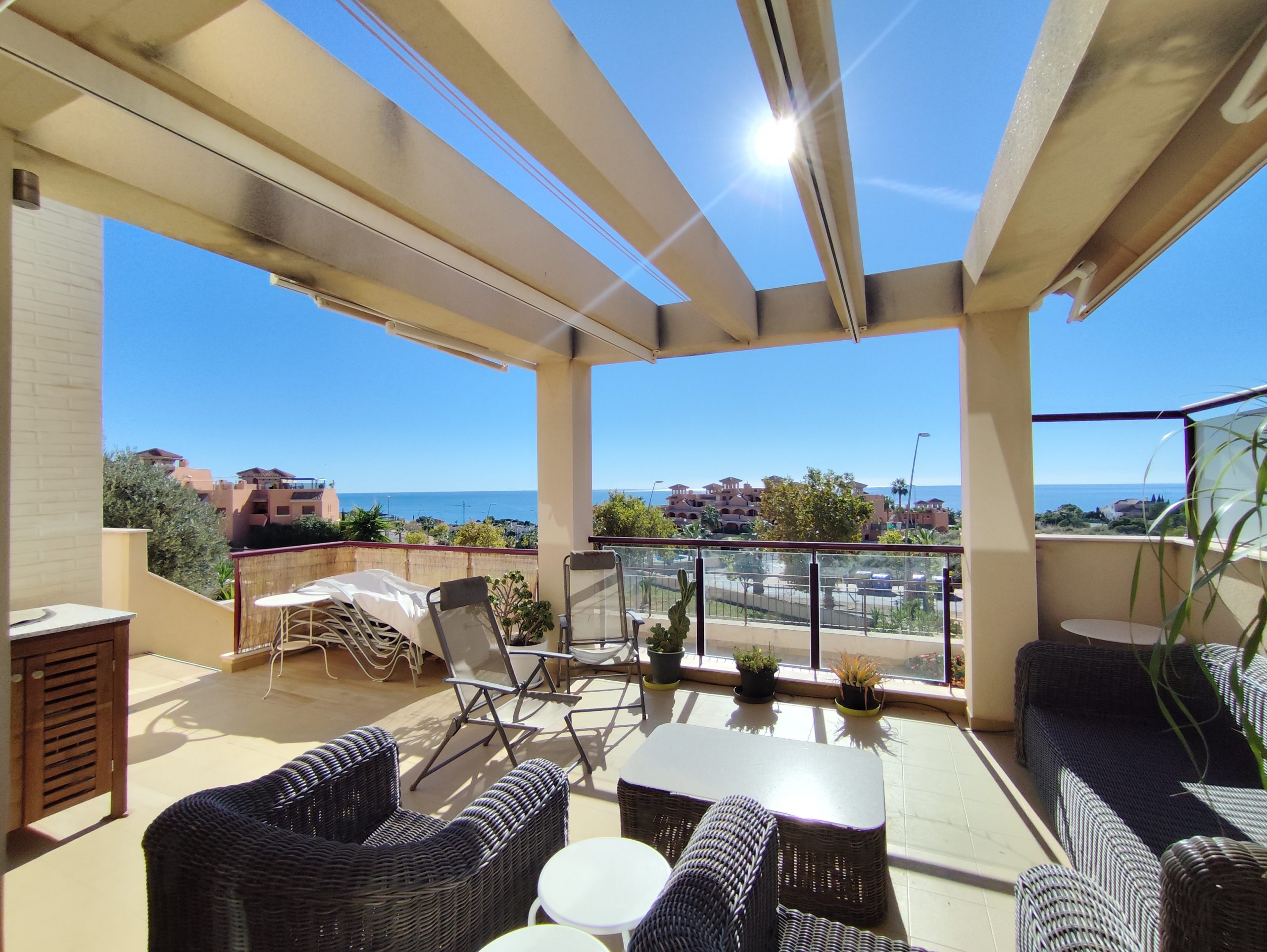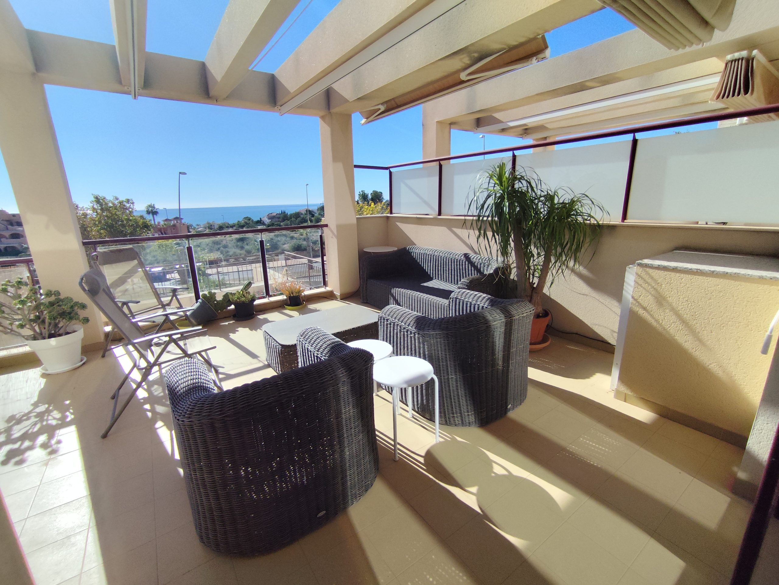 Terraza con vistas al mar incluso desde la cocina se ve el mar y una gran terraza sur 30m2.